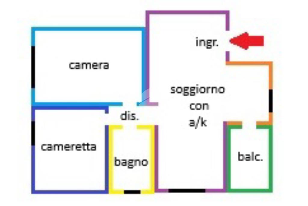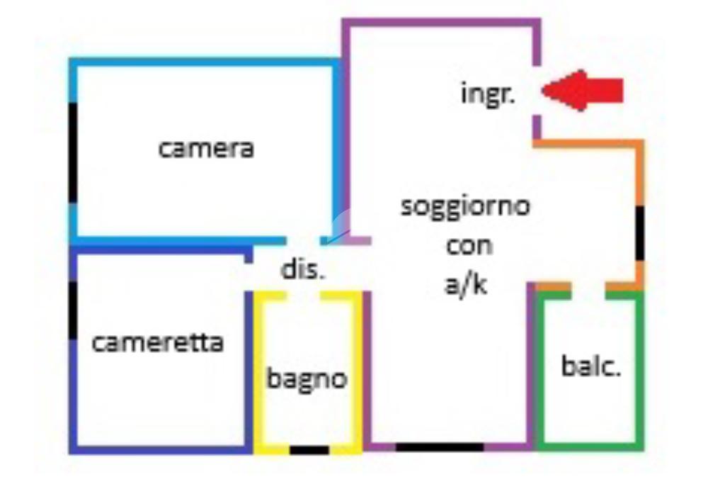 Proponiamo in vendita un appartamento situato al primo piano, L'immobile è stato completamente ristrutturato, offrendo un ambiente moderno e funzionale. L'immobile è composto da: Ingresso soggiorno con angolo cottura, camera matrimoniale, cameretta ed infine un bagno con doccia e finestra.